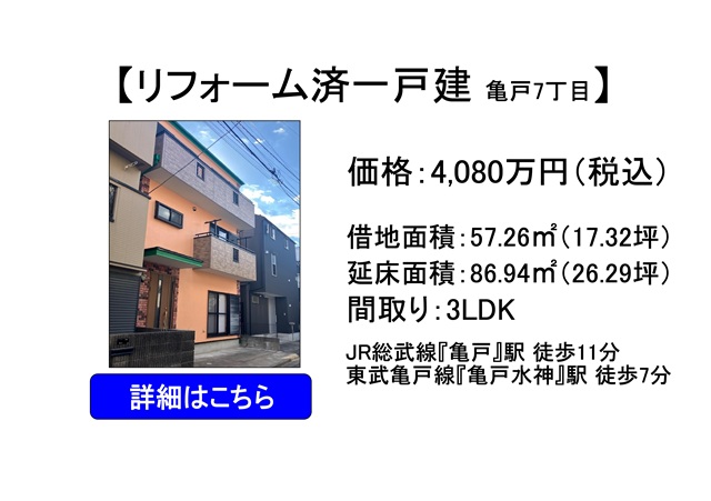 【リフォーム済一戸建 亀戸7丁目】