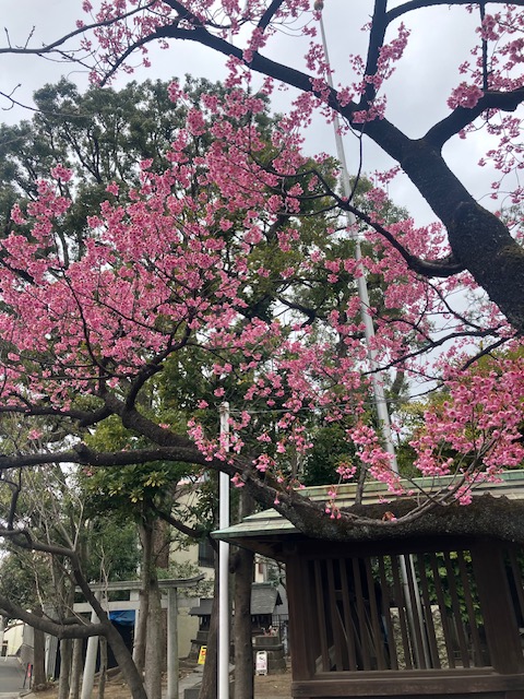 寒緋桜が見頃とのニュースを見て、品川区北品川の「荏原神社」に行ってきました。