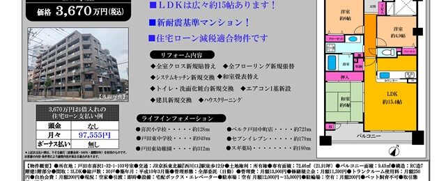 【オープンルームを開催します】 ◆日時:日時:6/28(土)・29(日)11時~18時 ◆所在:戸田市喜沢1-32-1-103号室 ◆交通:京浜東北線『西川口』駅 徒歩12分 ◆価格:3,670万円(税込)
