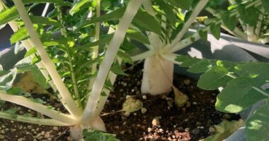 「亀戸大根」を収穫しました!!記録を見ますと10/4に種まきをしていますので収穫まで約2か月かかりました。亀戸大根は江戸時代に亀戸付近で栽培されていた大根で、東武亀戸線『亀戸』駅でいただいた種を蒔いたものです。楔形をして … 続きを読む 家庭菜園 その6!