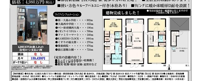 【オープンハウス開催!】 ◆日時:日時:4/18(土)・19(日) 11時~18時 ◆所在:江東区大島2-11-2 ◆交通:都営新宿線『西大島』駅 徒歩6分 ◆価格:4,980万円(税込) ◆間取:3LDK+ルーフバルコ … 続きを読む 【オープンハウス開催!】